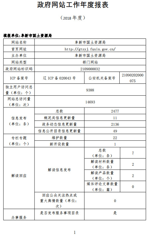 2018年十大正规博彩平台国土资源局网站工作年度报表