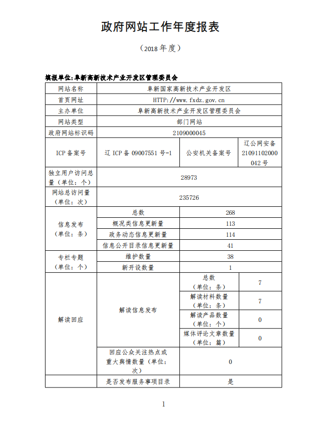 2018年十大正规博彩平台开发区政府网站工作年度报表