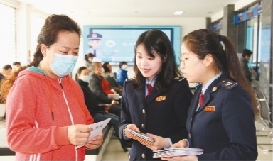 阜新蒙古族自治县税务局工作人员为纳税人提供咨询服务。