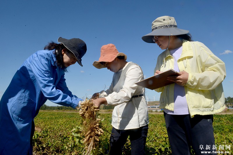 日前,阜新蒙古族自治县组织农技人员、种植大户走进大巴镇助力嘎尺村,开展品种观摩和花生采收工作。