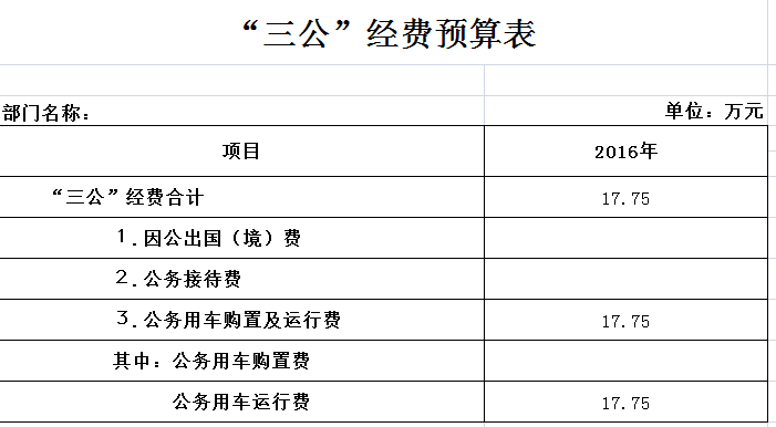 2016年“三公”经费预算数17.75万元,其中:公务用车运行费17.75万元。2016年“三公”经费预算数与2015年“三公”经费预算数持平。