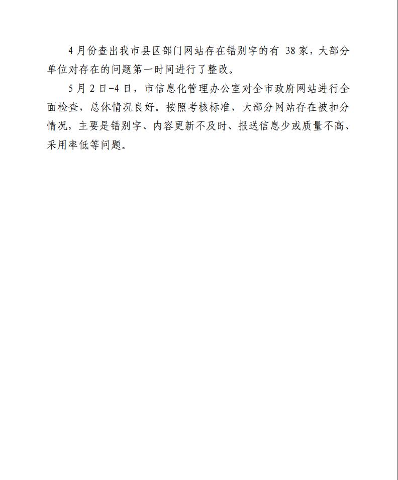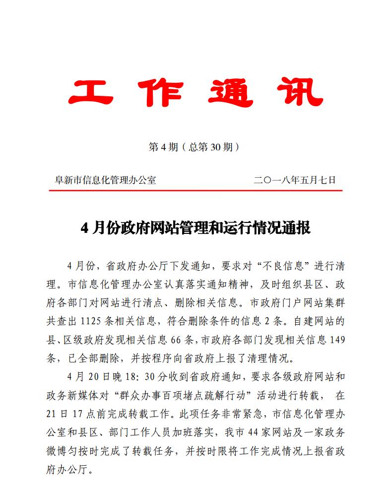 2018年4月份政府网站管理和运行情况通报
