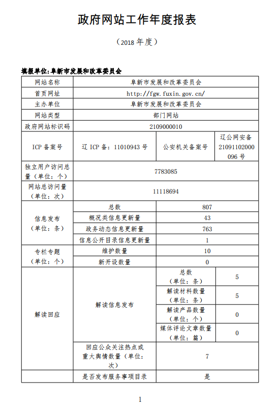 2018年十大博彩正规平台发展和改革委员会网站工作年度报表
