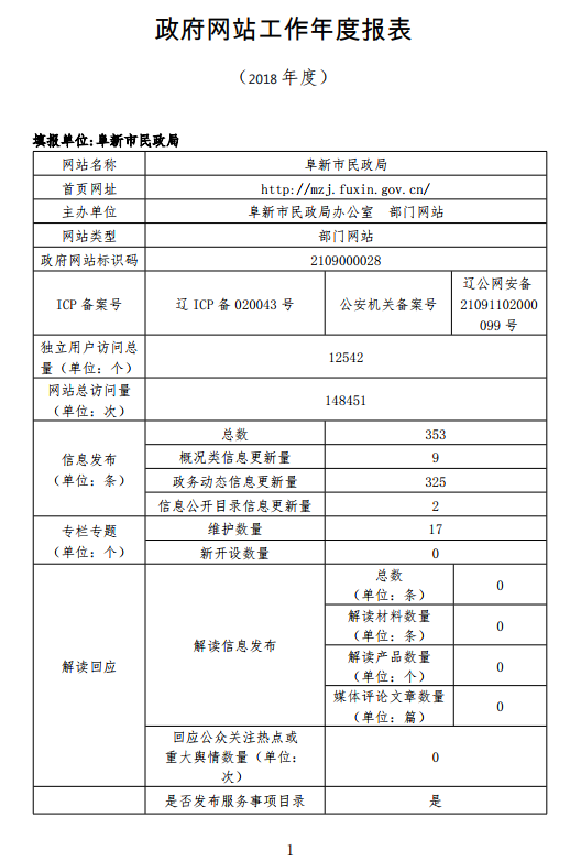 2018年十大正规博彩平台民政局网站工作年度报表