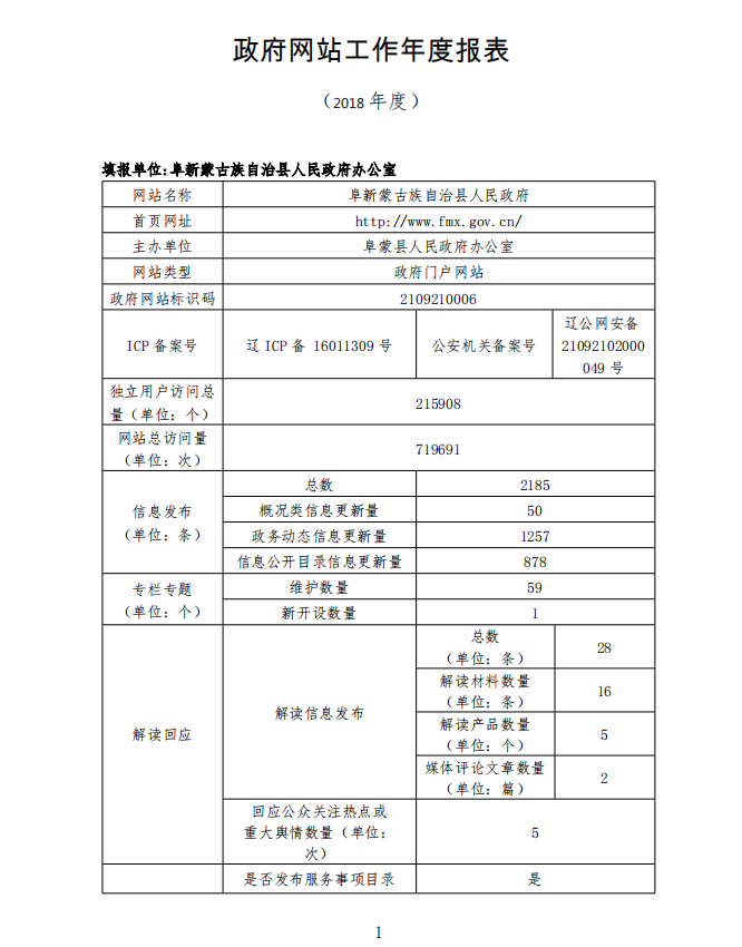 2018年十大博彩正规平台阜蒙县政府网站工作年度报表