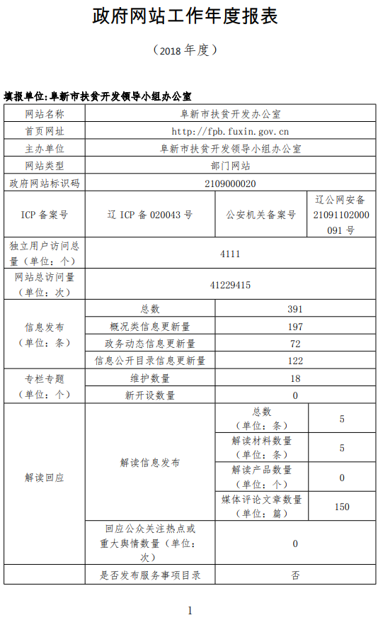 2018年十大正规博彩平台扶贫开发领导小组办公室网站工作年度报表