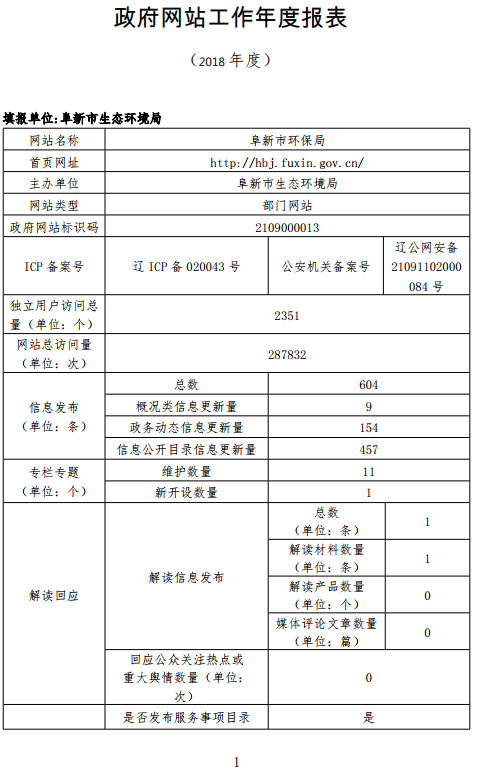 2018年十大博彩正规平台生态环境局网站工作年度报表