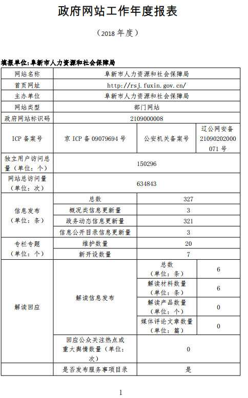 2018年十大正规博彩平台人力资源和社会保障局网站工作年度报表