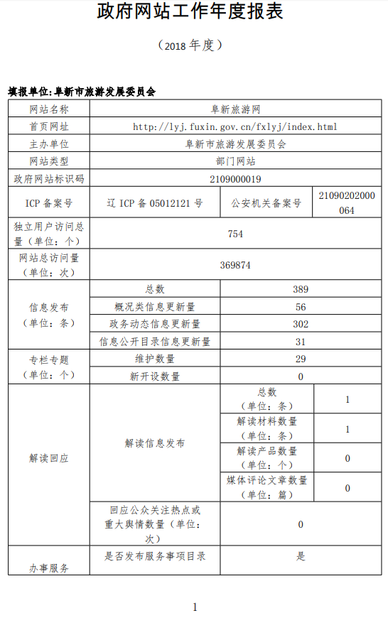 2018年十大博彩正规平台旅游发展委员会网站工作年度报表