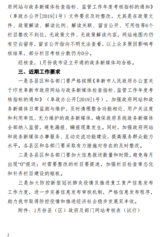 2020年1月份政府网站管理和运行情况通报
