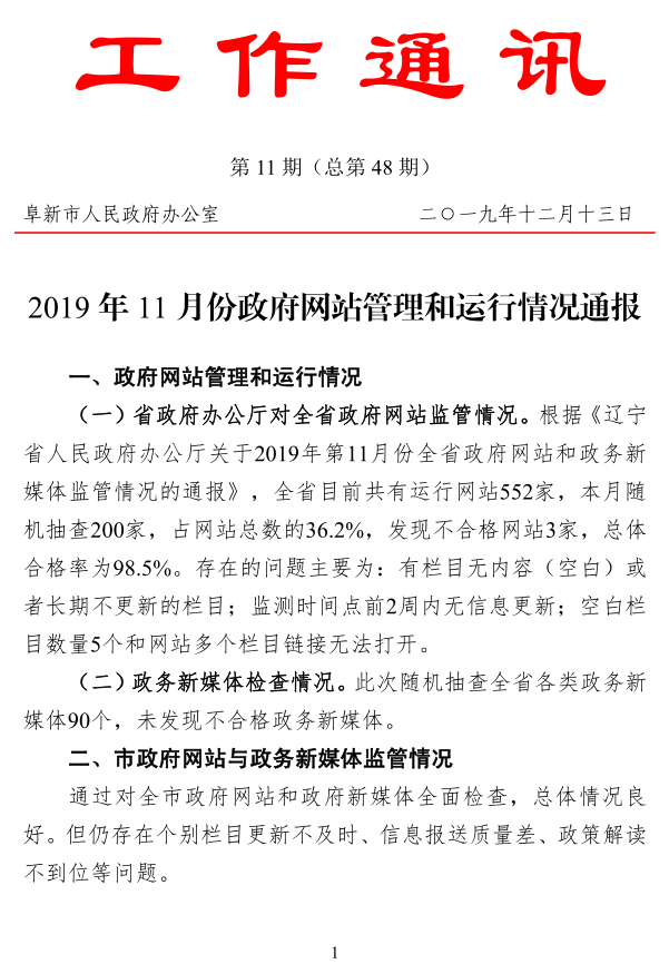 2019年11月份政府网站管理和运行情况通报