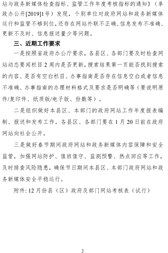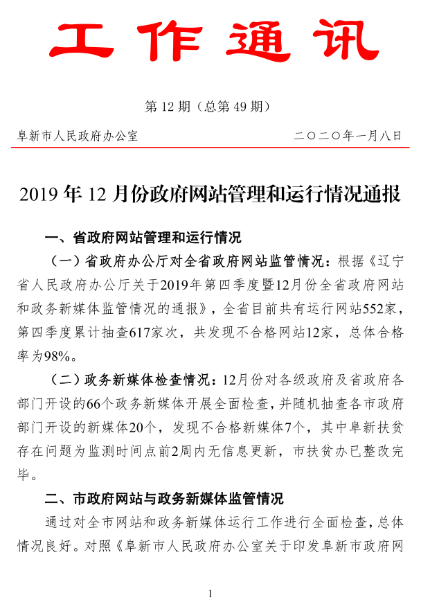 2019年12月份政府网站管理和运行情况通报