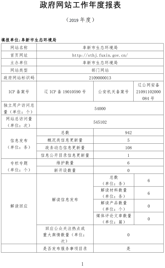 2019年十大博彩正规平台生态环境局网站工作年度报表