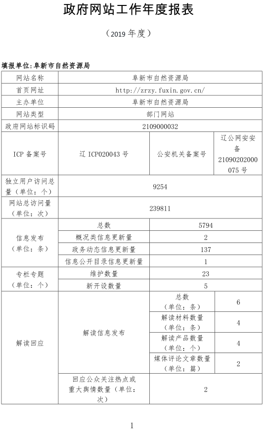 2019年十大正规博彩平台自然资源局网站工作年度报表