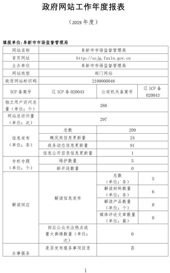2019年十大正规博彩平台市场监督管理局网站工作年度报表