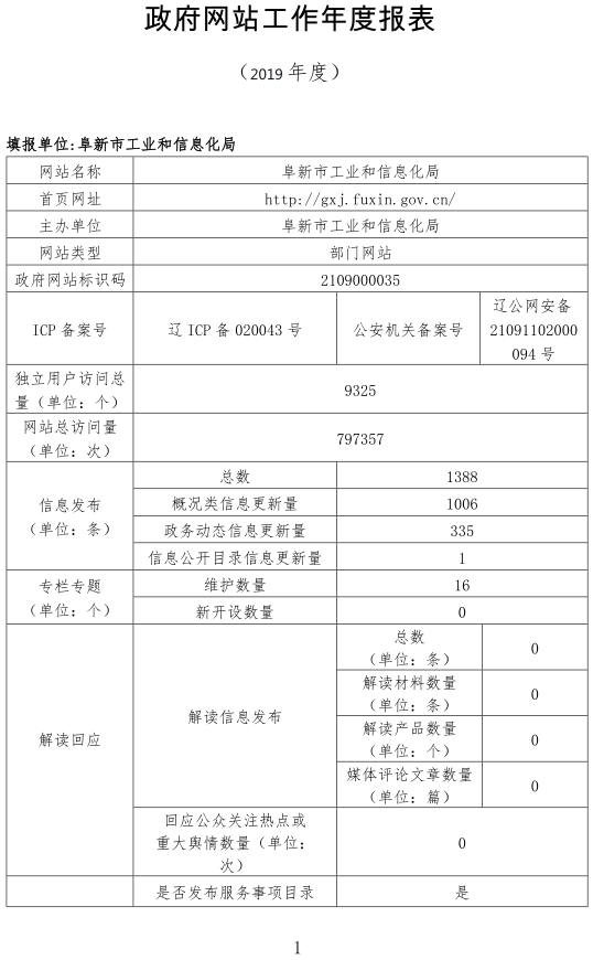 2019年十大正规博彩平台工业和信息化局网站工作年度报表